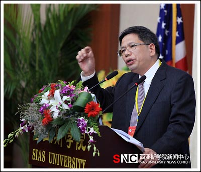 林金辉教授演讲的题目为“《国家中长期教育改革和发展规划纲要》与中外合作办学的可持续发展”。,此次会议的150多位代表及西亚斯国际学院的部分师生共300多人出席了大会。演讲主要内容包括:《规划纲要》对中外合作办学的总体规划与要求;新形势下中外合作办学如何办。此次演讲得到了热烈的回应和一致好评。林教授还在27日下午和28日的分论坛同与会专家、学者就中外合作办学的理论与实践问题深入地进行了学术交流。