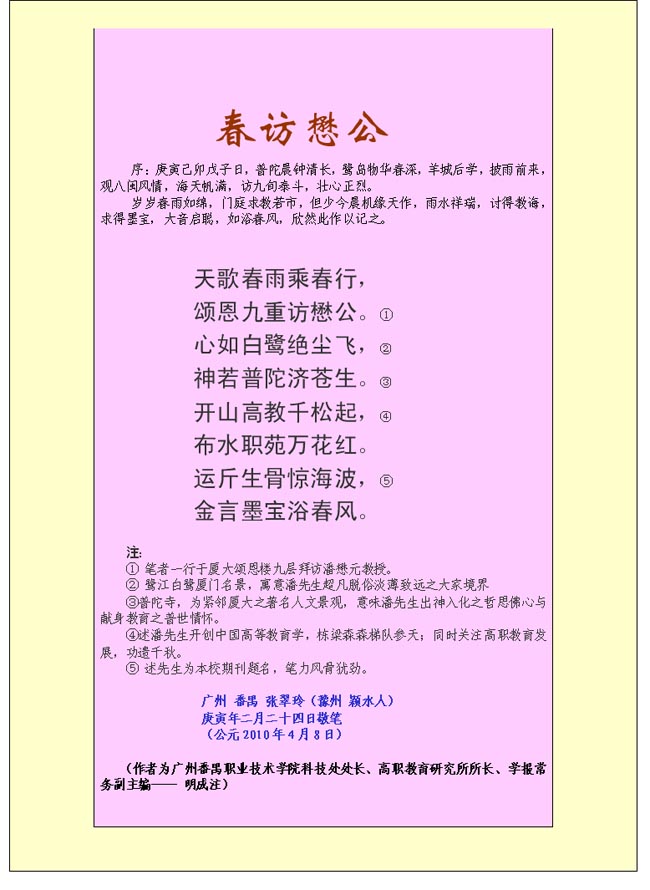 (作者为广州番禺职业技术学院科技处处长、高职教育研究所所长、学报常务副主编―― 明成注)