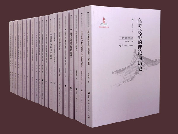 今年是我国恢复高考40周年,华中师范大学出版社隆重推出了厦门大学刘海峰教授主编的“高考改革研究丛书”。该丛书共22卷本、约768万字,是中国第一套高考改革研究丛书,全面系统地展现了中外高校招生考试制度的最新研究成果,对高考改革从理论、政策、法治、内容、形式,到招生考试的区域公平、少数民族招生考试政策、效度和评价等方面进行了深入的研究,同时对美国、英国、俄罗斯、加拿大、澳大利亚、日本和台湾地区的高校招生考试制度进行专题探讨。