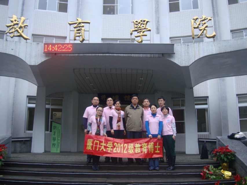 2014年1月中下旬,我院2012级教育专业博士生沈曲、罗先锋、王婧、黄云碧、雷兰川、赵光锋、周琬謦等7名博士生组成的访学团赴台进行了为期6天的调研。在台期间,访学团先后抵达台北、宜兰、台南、台中等城市,参访了政治大学、政治大学附属中学、阳明大学、成功大学等学校,同时还参访了健宝园、新板公共托育中心等台湾知名幼儿教育机构,所参访的学校或教育机构都召开了专门的座谈会,围绕学校领导与管理、国际交流与合作、教师教育与发展、人才培养与改革、通识教育等主题与专家、学者们进行了深入细致的交流。其次,访学团还参观了台湾大学、台北科技大学、台湾艺术大学和易经大学,对不同类型大学的校园文化进行深入体验与了解。