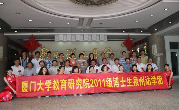厦门大学教育研究院博士研究生访学团在潘懋元教授的带领下,分别于6月16日的上午和17日下午考察了泉州理工学院,带团老师还有原厦门大学常务副校长潘世墨教授、教育研究院邬大光教授、党总支书记宋毅、副书记陈文、副院长杨广云副教授、别敦荣教授、陈武元教授等。此行的目的主要是进一步了解民办高校和高等职业教育发展的现实状况、面临的主要挑战以及未来的战略构想等。