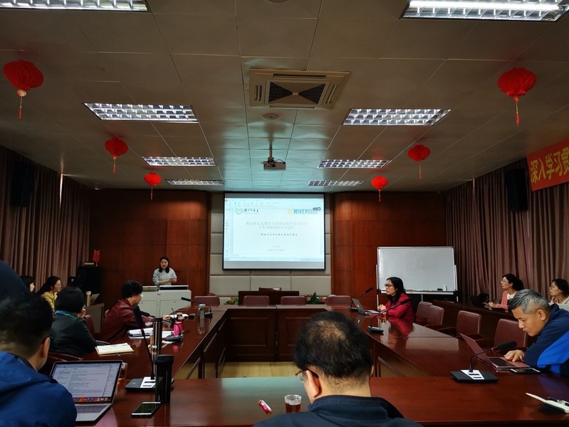 2019年3月18日上午,中心两位赴美交流访学博士生就其访学研究及见闻为我中心师生分享了她们的体验与思考。本次讲座由覃红霞教授主持,潘懋元先生、郑冰冰书记、王洪才教授、郑若玲教授、董立平教授、陈武元教授、陈兴徳副教授、连进军副教授、林敏助理教授、陈斌助理教授、蔡秀英助理教授等教师以及部分硕博士研究生参与了本次讲座。