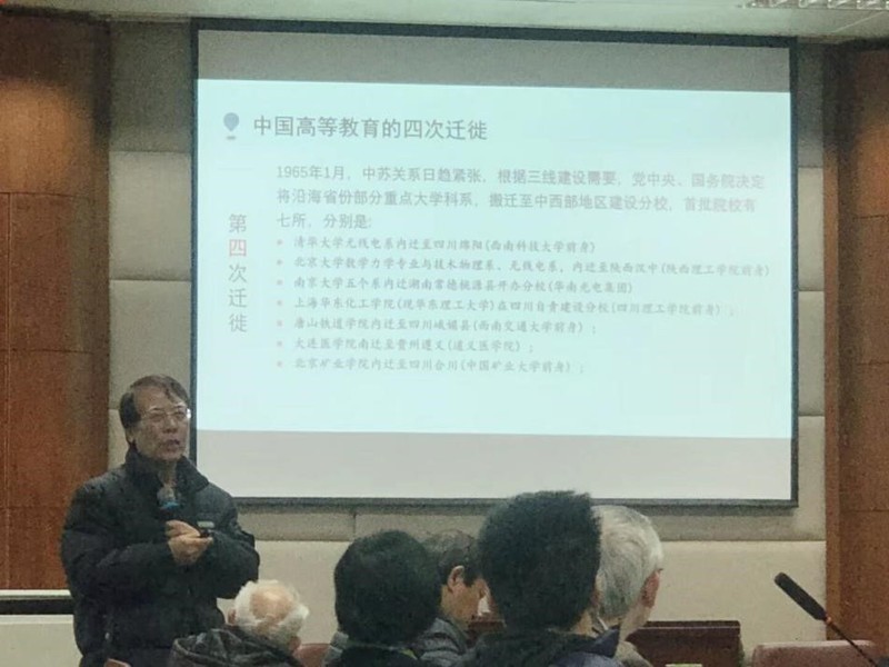 报告伊始,邬大光教授首先带领大家一起回顾了1931年至1975年间我国高等教育的四次迁徙:第一次是1931年至1945年抗战时期约80所高校的大迁徙,迁徙原因主要是日军侵略、战乱频仍,许多东部地区高校内迁至西南、西北地区;第二次是1949年新中国成立,国共对立,至少有12所高校在台湾复校;第三次是1952年至1957年受院校调整政策的影响,为改变当时我国高等学校布局不合理现状,约有200多所高校重新调整院系、专业的设置和分布;第四次迁徙发生在1965年至1975年,由于中苏关系紧张,一批位于沿海省份的重点大学科系根据国家三线建设需要,内迁至中西部地区创建分校。