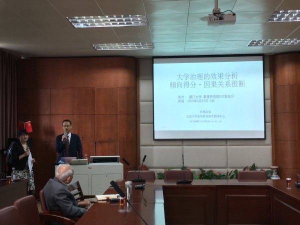 2019年5月13日,广岛大学村泽昌崇教授在502学术报告厅为我中心师生开设了题为“大学治理的效果分析——倾向得分·因果关系推断”的学术讲座。本次讲座由覃红霞教授主持,潘懋元先生、吴薇教授、李国强副教授、文静助理教授、林敏助理教授、陈斌助理教授及部分硕博研究生参加了本次讲座。