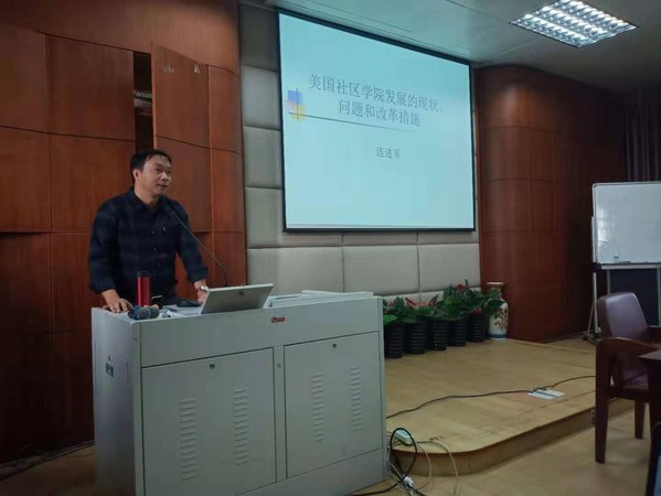 2019年11月25日上午,连进军副教授为我院师生作了题为“美国社区学院发展的现状、问题和改革措施”的学术讲座。本次讲座由覃红霞副院长主持,潘懋元先生、刘振天教授、郑宏副教授等教师以及本院部分硕博生参加了此次学术讲座。