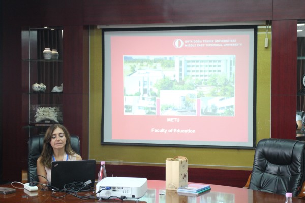 在交流会上,吴薇老师首先对土耳其中东技术大学院长的来访表示了热烈欢迎。她向客人介绍了我校的基本情况,我院的发展历程、研究团队与特色以及开展国际合作情况。接着,Özgül Yılmaz Tüzün教授对中东科技大学教育学院,包括其系所设置、教职人员、教学科研以及留学生教育等情况进行了分享。杨广云副教授、连进军副教授,以及蔡秀英助理教授对于中东技术大学教育学院的国际学生流动、辅修专业、学位设置以及教学开展情况进行了提问与交流。最后,双方教师就两院在师生互换与交流等方面的合作意向进行讨论。会后,Özgül Yılmaz Tüzün教授对我院教师的热情接待表示了衷心感谢,她希望双方未来能够继续加强合作。