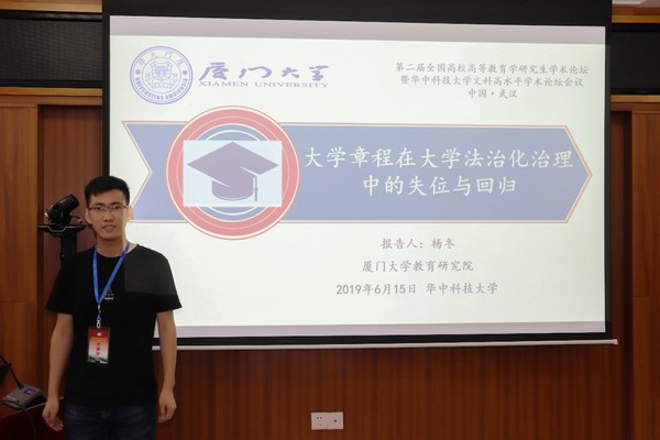 在第一分论坛中,我院2017级硕士生杨冬作了题为《大学章程在大学法治化治理中的失位与回归》报告。