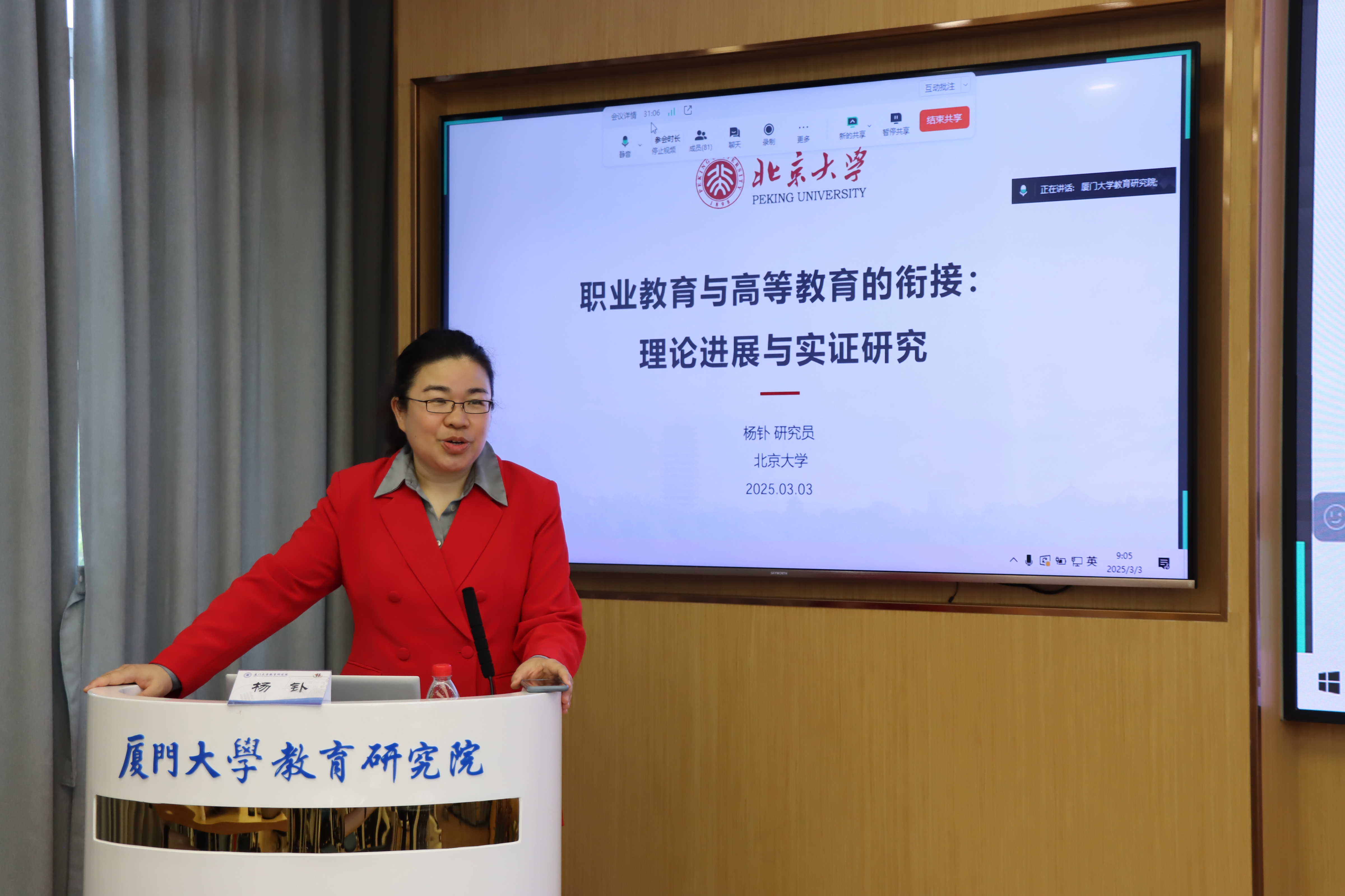 2025年3月3日上午,北京大学教育学院教育经济与管理系主任杨钋研究员为我院师生作了题为《职业教育与高等教育的衔接:理论进展与实证研究》的学术报告,两百余名师生通过线上线下的方式参会。会议由赵婷婷教授主持。