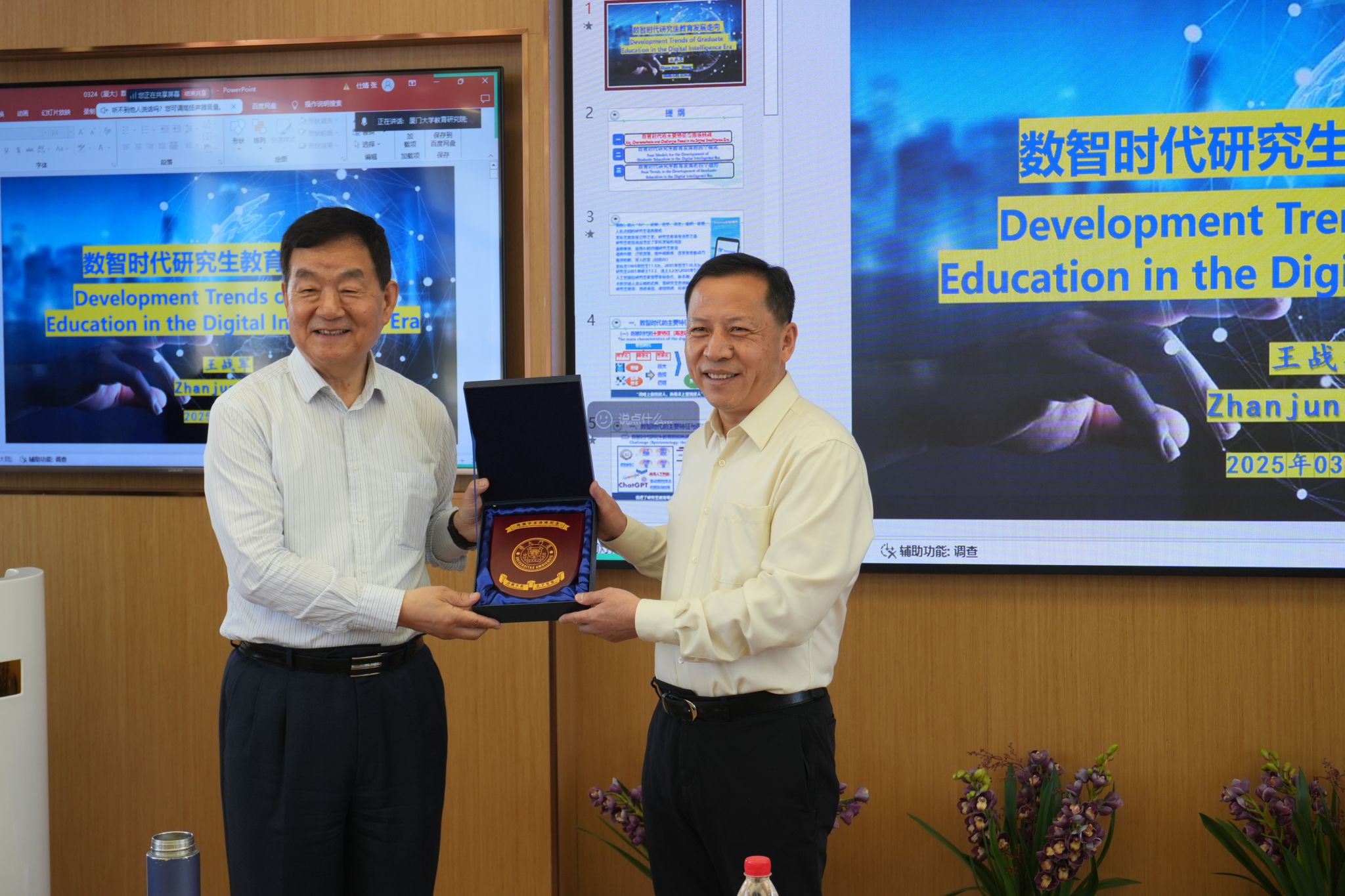 2025年3月24日,中国学位与研究生教育学会副会长兼学术委员会副主任王战军教授应邀开展题为《数智时代研究生教育发展走向》的南强学术讲座。厦门大学教育研究院党委书记刘振天教授主持报告,并为王战军教授颁发厦门大学南强讲座纪念碑,300多人通过线上和线下相结合的方式参会。