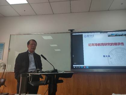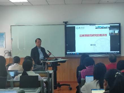 2021年3月15日上午,我院邬大光教授为师生作了题为《论高等教育研究的继承性》的学术报告。潘懋元先生、别敦荣院长、覃红霞副院长等我院师生通过线上线下相结合的方式参加了此次讲座。本次报告会得到全院师生的积极响应,参加人数较多、现场讨论氛围热烈。报告会由王洪才副院长主持。