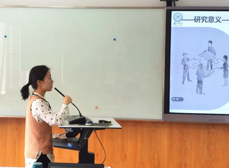 马有晶同学从虚拟校园的基本内涵及研究意义、美国虚拟校园的主要表现形式和对我国的启示三个方面分享了自己的研究。马有晶同学认为,虚拟校园技术的内涵是多种技术在教育领域的应用以打造具有真实感的校园环境。其重要的应用形式就是进行虚拟远程教育。这种虚拟远程教育可以使学生在无法亲临校园的情况下能身临其境地进行学习和体验。马有晶同学进一步表示,美国虚拟校园的主要表现形式有虚拟校园浏览系统、虚拟仿真实验室、虚拟学校社群和云毕业典礼等。其优势是成本低、互动性强、前瞻性好、安全性高且建设形式多样、建设主体多元。最后,马有晶同学从完善多样化的虚拟校园设计、提高虚拟校园的国际化水平、关注虚拟教学的质量提升及重视虚拟校园的人文关怀等方面提出了美国虚拟校园建设对中国高校的启示。