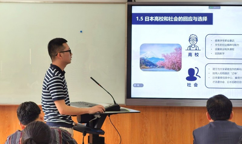之后,俞兆达同学继续报告了该研究的后半部分。他从国家就业政策的传导这一问题出发,分别介绍了五国高校和社会对各自国家就业政策的回应与选择。他指出,五国高校和社会在对各自国家就业政策的选择与回应上存在很多共性的实践活动,又各具有本国特色。俞兆达同学认为,从高等教育普及化前后五国的高校毕业生就业政策及高校与社会对各自国家就业政策的选择与回应中可以得出许多有益的启示。例如,确定就业政策的边际、促进职业教育和职业生涯教育的推行、加快就业与创业服务体系的构建以及终身学习型社会的建设等。最后,俞兆达同学指出,从此研究中还可以得出一些值得进一步再思考的问题。例如,何为高等教育普及化、高等教育普及化对劳动力市场的影响、普及化阶段高校毕业生的核心竞争力及高等教育普及化与就业问题的关系等。