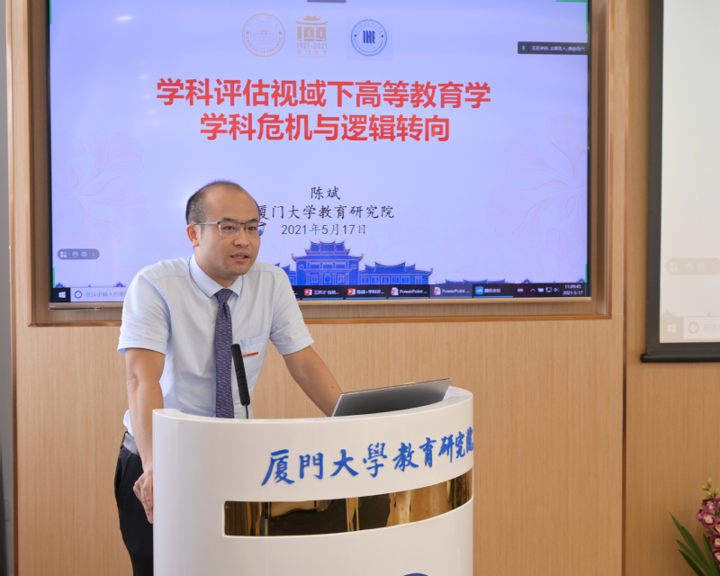 陈斌助理教授报告题目为《学科评估视阈下高等教育学科危机与逻辑转向》,报告内容围绕学科规律与学科危机、学科评估视阈下高等教育学学科危机、理性看待高等教育学学科危机、高等教育学学科发展逻辑转向。其认为高等教育学学科危机类型包括合法性危机、生存性危机、发展性危机,其中高等教育学发展遇到最典型的危机即为生存性危机。危机的存在并非坏事,反而有助于学者固守学科边界,强化学科自我意识,精进学科专业知识。与此同时,增进对其他学科的敏感性,发现原有学科的破绽与不足,找寻学科发展新增长点。