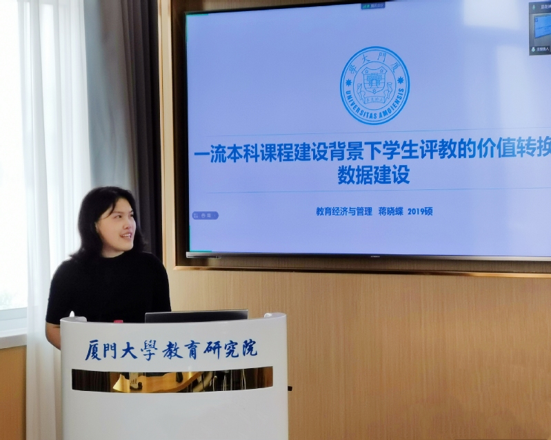 2019级硕士生蒋晓蝶作题为《一流本科课程背景下学生评教的价值转向与数据建设》,研究以“学生评教应如何参与到一流本科课程的评估与建设中”为研究问题,对高校每学期集中举行的大学生教学评价及其相关文本进行分析,分别从“学生评教为谁评”、“学生评教评什么”、“学生评教怎么评”入手,逐步对高校大学生本科课程教学评价进行反思,以期对“双万计划”下的一流本科课程建设有所助益。