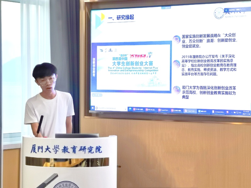 2020级硕士生王洪国作题为《我国大学生创新创业教育教学模式研究——以厦门大学<深化创新创业教育改革实施方案>为例》,他提出在“3S-B”创新创业教育教学模式中,创新创业教育是核心,物质基础、制度规范、行为引导和精神激励四个环节是基础。最后提出要激励广大师生都投入到创新创业教育中,让创新创业教育充满活力。