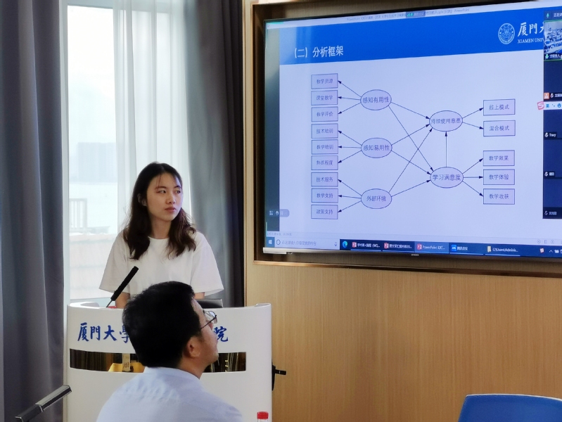 2019级硕士生方芳作题为《大学生在线学习满意度和持续使用意愿的性别差异》,她通过大学生在线学习满意度的问卷调查得出:尽管两性在在线教学的感知有用性、感知易用性、外部环境、教学满意度和持续使用意愿等方面存在差异,但差异不大,且与一贯的认知相左,女生在绝大多数观测指标上的得分高于男生;在影响男女生在线教学满意度和持续使用意愿的作用机制上也存在差异等结论。