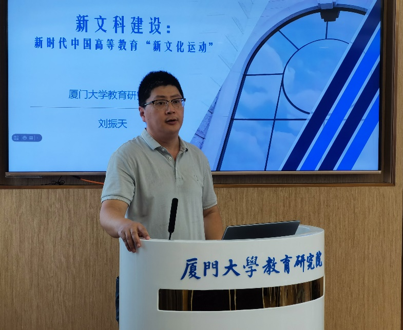 2021年6月7日上午,我院党委书记刘振天教授作题为《新文科建设:新时代中国高等教育“新文化运动”》的学术报告。此次报告是厦门大学新文科系列讲座的第三辑第四讲,受到了师生们的广泛关注和热烈欢迎。潘先生、王洪才副院长、覃红霞副院长等师生通过线上线下相结合的方式参加了此次讲座。厦门大学社科处副处长张随刚主持报告会。