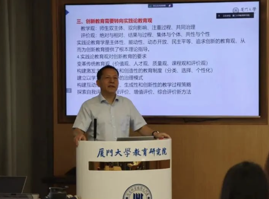 紧接着,刘振天指出,创新教育需要由实体论教育观转向实践论教育观。相对于旧唯物主义与唯心主义实体论,实践论新世界观实现了在物质观、人与环境的关系与实践观三个方面的超越。这集中表现为:突出了人在实践中的主体性、主观能动性和创造性。因此,实践论教育学是解放和发展人的主体性、能动性和创造性的教育学,具有生成性、动态开放性、民主平等性与进取性等特质,这为创新教育提供了观念上的根本指导。刘振天强调,实现实践论教育学转向,应当从国家需要、基础保障、教育环境、治理体系、境外经验知识等方面探讨转向的外在条件;同时,通过审思我国长期且持续的教育改革历程,从已积累的共识、实践的经验、体制机制等方面,为转向发展提供可行的内部条件。