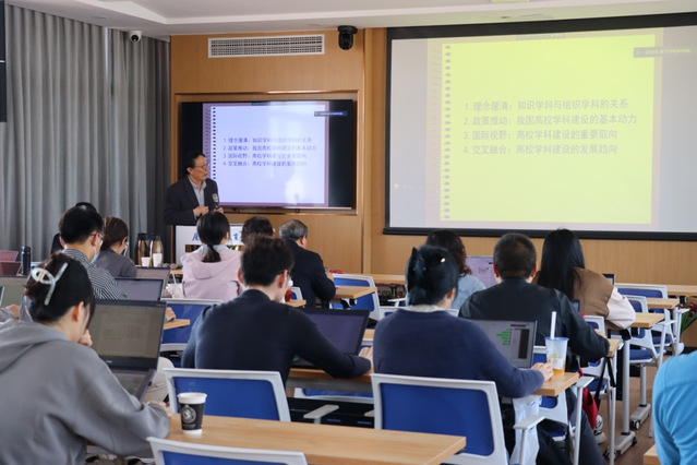 胡建华教授的讲座精彩翔实,师生就交叉学科和跨学科的区别与联系、民办应用型高校的学科建设、学科交叉下的学科壁垒等问题与他进行了深入交流。他答道,跨学科是一种研究行为,而交叉学科是两个及以上学科之间的融通,先有“跨”学科,再有学科“交叉”;应用型和研究型大学的学科建设方法没有区别,但应围绕学校性质、学校目标明确学科建设方向;破解学科壁垒问题要从根本上革新学科制度,这需要有良好的方案和政府政策引导。最后,赵婷婷教授总结认为本次报告让在场师生深受启发,提高了师生对“双一流”建设中高校学科发展的认识深度。