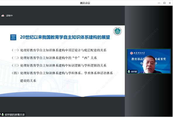 2022年12月19日上午,山西大学侯怀银教授为我院师生作了题为《20世纪以来我国教育学自主知识体系建构的回顾与展望》的学术报告。刘振天教授等两百多位师生通过线上方式参会,例会由王洪才副院长主持。