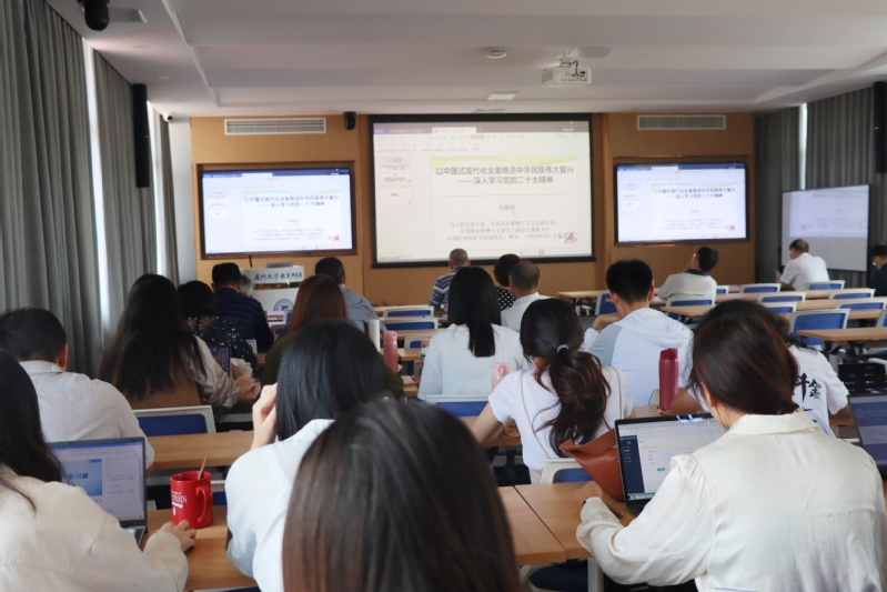 2022年10月28日下午,中国社科院研究所纪委书记、副所长、二级研究员冯颜利在线上作题为《以中国式现代化全面推进中华民族伟大复兴——学习贯彻党的二十大精神》专题报告。会议由马克思主义学院中国化教工支部书记吴茜主持,我院师生党员以视频会议形式在黄宜弘楼502报告厅参加本次学习。
