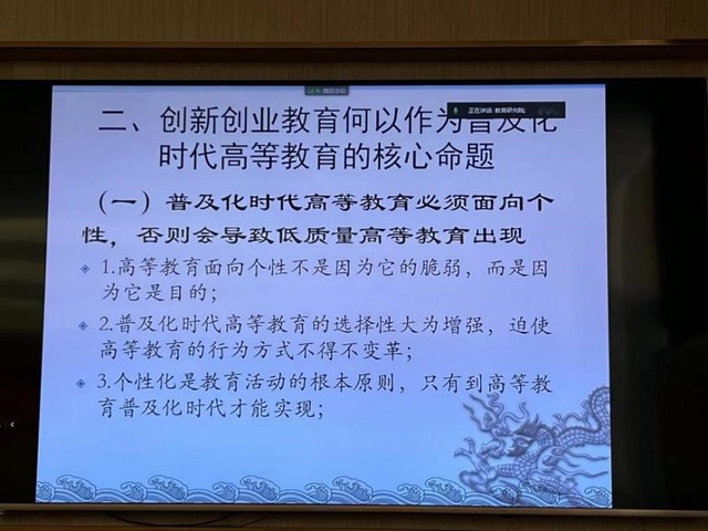 2022年10月24日上午,王洪才教授为我院师生作了题为《创新创业教育:高等教育普及化时代的核心命题》。邬大光教授、姚有新副书记等100多位师生通过线上线下方式参加了此次报告会,报告会由刘振天教授主持。