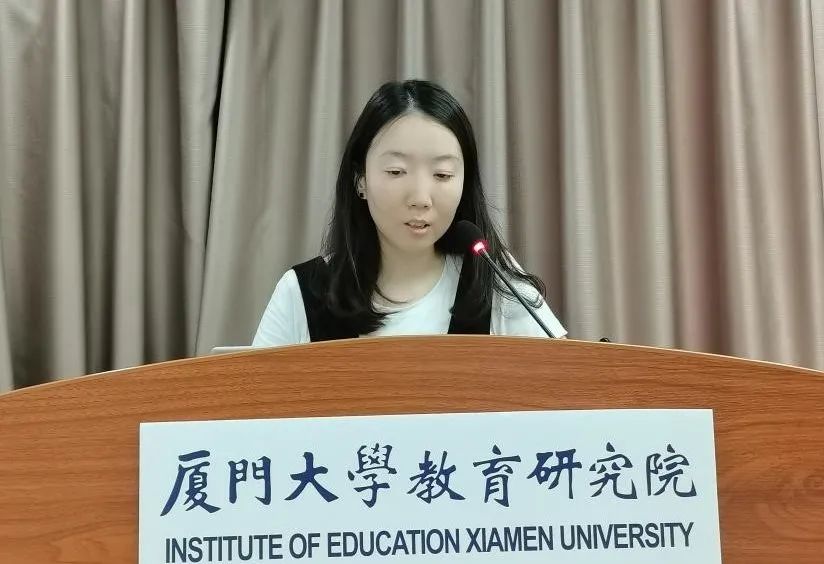 第三场报告是由秦己媛同学带来的《我国高校大类招生发展方向研究》,报告从大类招生的内涵与外延、现状、产生的问题、发展趋势等方面对其研究结果进行阐述。她指出,国内关于大类招生的内涵与外延的界定经历了数次变革,当前其概念内涵主要包括专业大类、通识课程与专业课程以及专业分流三大要素。接着,她从我国大类招生的现状出发,总结了大类招生的优点,包括给予学生更多的专业选择空间、增加专业学院对本科人才的培养投入等。此外,还以中山大学取消大类招生为切入点,引出我国大类招生过程中产生的问题,如专业性较强的专业不适合大类招生、专业之间的平衡与协调发展问题更加突出等。最后,将我国高校大类招生的发展趋势总结为以下几点:第一,部分院校回归专业招生;第二,分流时间缩短;第三,招生类别减少;第四,大类招生与大类培养分离;第五,大类逐渐小类化。