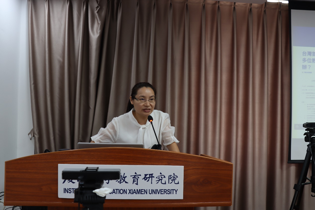 张宝蓉教授报告的题目为《调控与规则:台湾私立高校退场中的公权力干预及其困境》。该报告首先探讨了公权力的概念和内涵,其次分析了台湾私立高校退场的背景,提出公权力干预的必要性,再次讨论了台湾私立高校退场中的两种公权力干预模式,最后就公权力干预的特征与困境进行了深入研究。