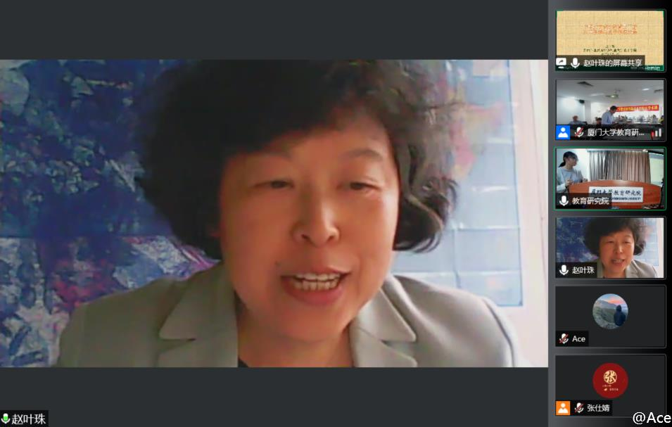 2022年5月20日上午,教育研究院44周年院庆学术周教师论坛(第三场)在学生公寓海韵八6楼报告厅举行。赵婷婷教授等四位老师作学术报告,我院师生、院友以及兄弟院校师生以线上线下相结合的方式参加了本次论坛。论坛上半场由陈斌副教授主持,王洪才教授作点评;下半场由乔连全副教授主持,赵婷婷教授作点评。