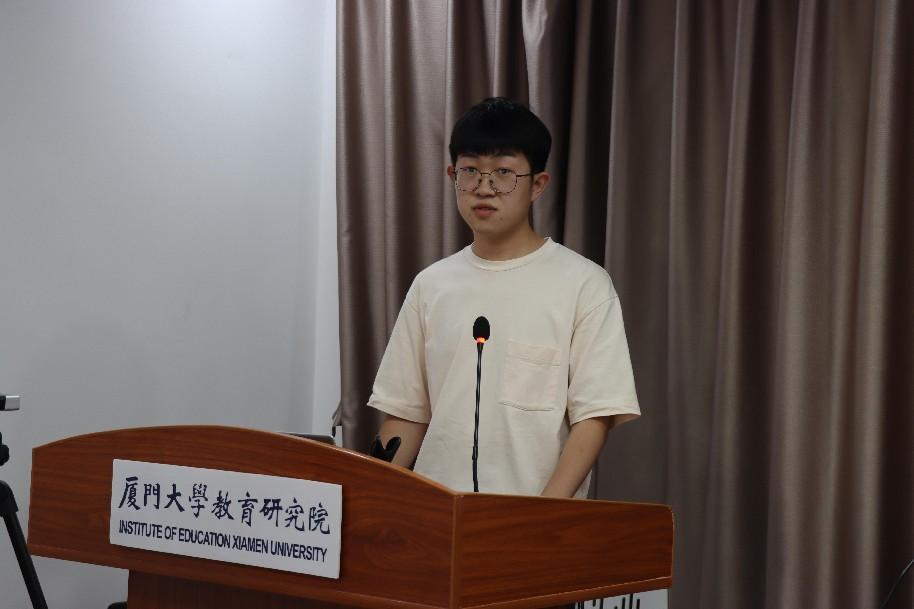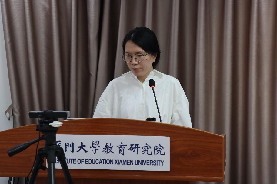2021级硕士生冷金艳作题为《学生为何打高分?——高分评教行为发生机制探究》的报告。该研究通过“集体高分”的评教现象,以《深化新时代教育评价改革总体方案》为切入点,针对Z大学的高年级学生进行访谈,得出“信号”、考试经验、人情关系、自我保护等作为主要影响因素的研究结论,并提出相应建议。