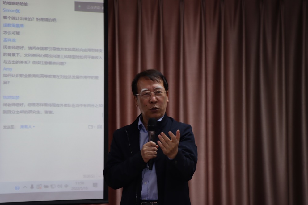学术报告结束后,闵维方教授还就相关问题与师生进行了热烈的互动交流。