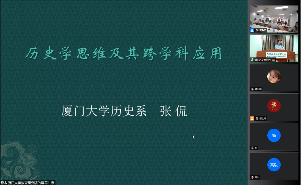 2022年5月9日上午,厦门大学人文学院历史系主任张侃教授为我院师生作了题为《历史学思维及其跨学科应用》的学术报告。本次报告由王洪才副院长主持,姚有新副书记等170余位师生通过线上线下相结合的方式听取此次报告。