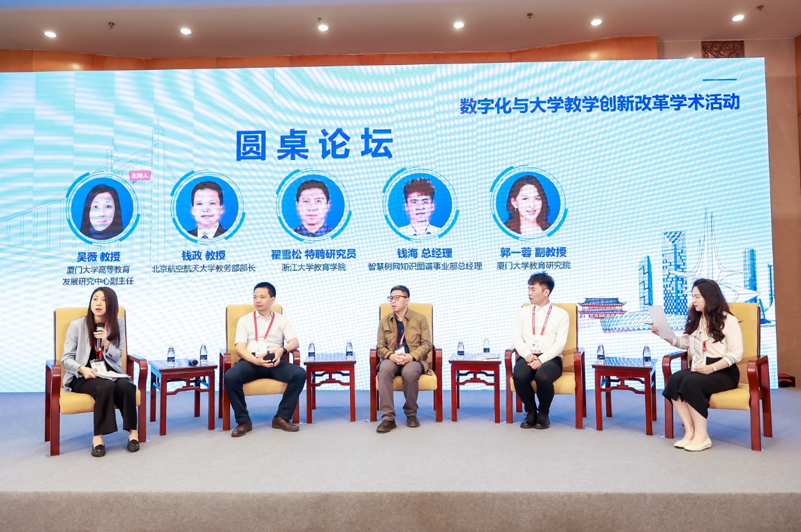 在圆桌论坛讨论环节,厦门大学高等教育发展研究中心主任刘振天教授、华中师范大学国家数字化学习工程技术研究中心副主任吴砥教授、北京航空航天大学教务部部长钱政教授、浙江大学教育学院特聘研究员翟雪松、厦门大学高等教育发展研究中心郭一蓉副教授、秦波涛总经理、钱政教授、李艳教授和钱海总经理就数字化与大学教学创新改革主题进行交流讨论。圆桌论坛分别由厦门大学高等教育发展研究中心别敦荣教授、厦门大学高等教育发展研究中心副主任吴薇教授主持。