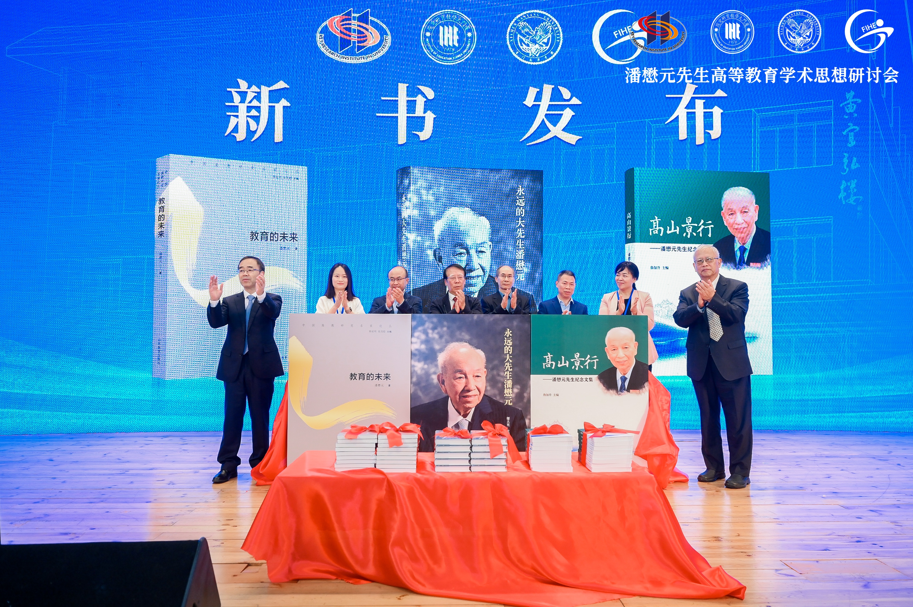 开幕式上还举行了新书发布仪式,厦门大学教育研究院院长别敦荣介绍了《教育的未来》(潘懋元著,山东教育出版社出版)《永远的大先生潘懋元》(邬大光主编,商务印书馆出版)《高山景行--潘懋元先生纪念文集》(鲁加升主编,厦门大学出版社)三本书的组织、编写及出版过程。张宗益、潘世墨和作者、出版社代表为新书揭幕。