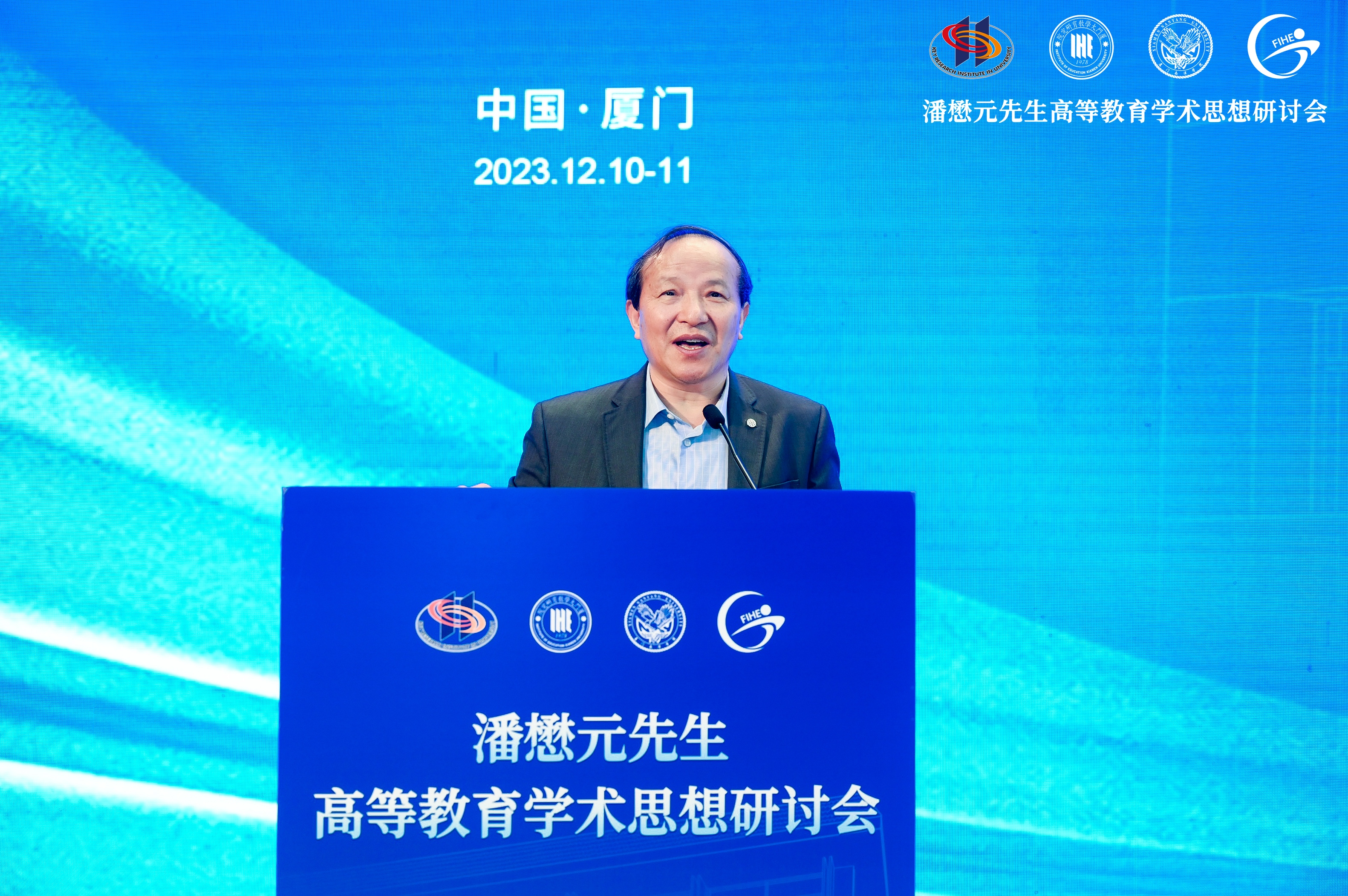 2023年12月11日,“潘懋元先生高等教育思想学术研讨会”在厦门大学举行。会议围绕潘懋元先生高等教育学术贡献、人格魅力与中国特色高等教育学自主知识体系建设主题展开研讨。中国高等教育学会副会长,厦门大学校务委员会副主任邬大光主持开幕式。