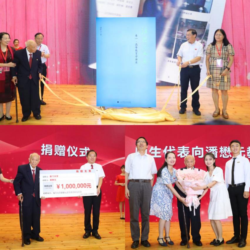 庆典仪式上,举行了《潘懋元文集》(修订版)首发式和“潘懋元高等教育基金”捐献仪式。《潘懋元文集》(修订版)由广东高等教育出版社再版,共9卷11册,计550余万字,收录了潘懋元教授上个世纪50年代以来至今发表的主要著作、论文、书序、书信以及学术年谱,全面系统地反应了潘懋元教授的教育思想和高等教育理论体系。“潘懋元高等教育基金”由厦门大学设立,主要用于奖励和资助厦门大学教育研究院的优秀师生,今后将逐步拓展到全国高等教育学科。基金设立以来,得到各界人士的大力支持。潘先生本人已多次捐款,今天在他百岁生日之际,再次为基金捐献人民币100万元!