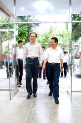 陈宝生部长在刘海峰院长的陪同下步入教育研究院
