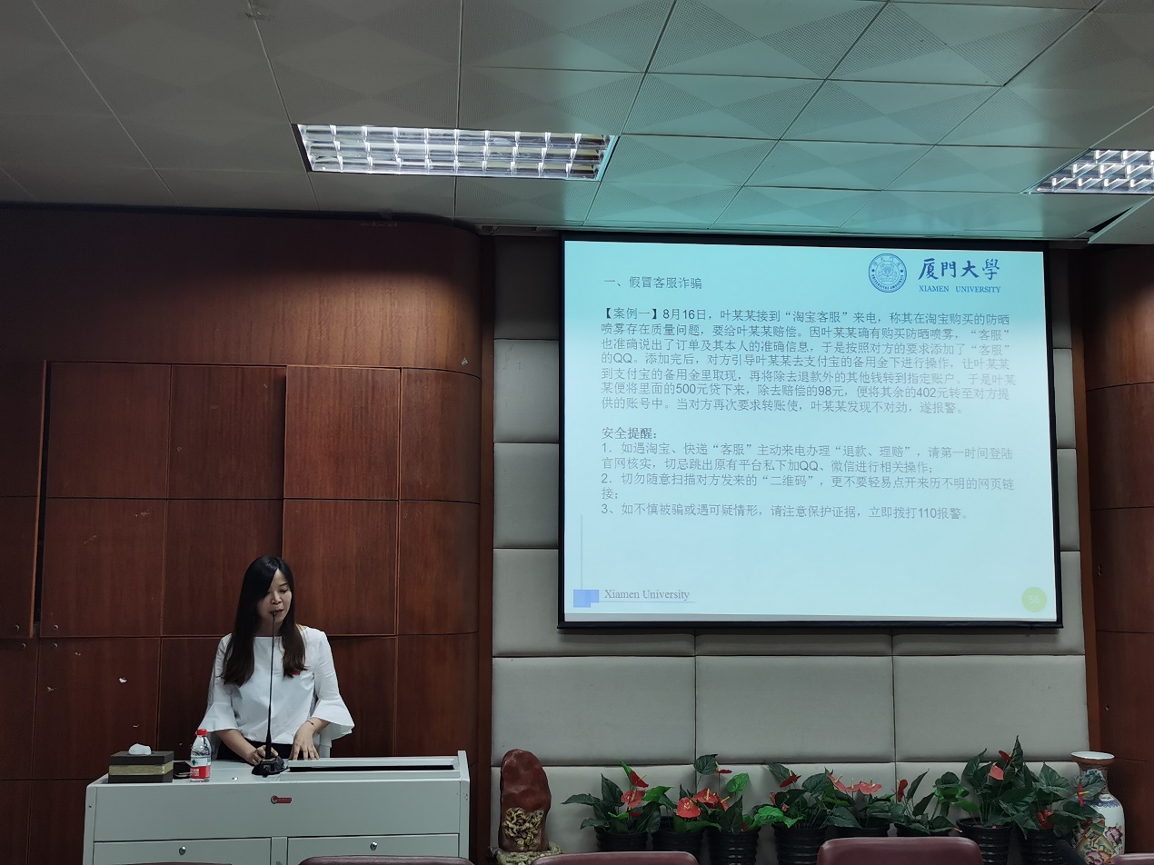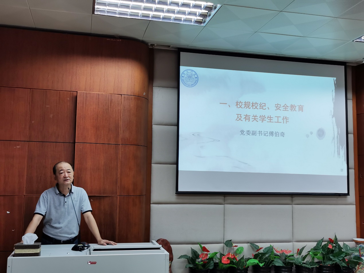 首先,我院党委副书记傅伯奇为新生进行了校规校纪及安全教育。傅伯奇副书记用各式各样的案例告诫新生在生活中和学习上都要严格遵守厦门大学的各项校纪校规。他强调,作为一名学生,在学习上要严明学术纪律,规范学术行为;在生活中要注意防火防盗,不在宿舍使用大功率违规电器、劣质电子配件;台风期间注意要关好门窗、避免外出;夏季要注意游泳安全,不可下海游泳。傅伯奇副书记还特意提到,疫情期间,每一位学生都应注意佩戴口罩防疫,课程活动中更要全程佩戴口罩,减少二次伤害,保持每日防疫打卡的习惯,并且不得在没有请假批准的情况下随意离开学校、离开厦门,在宿舍中要控制空调温度避免感冒从而引起体温升高。