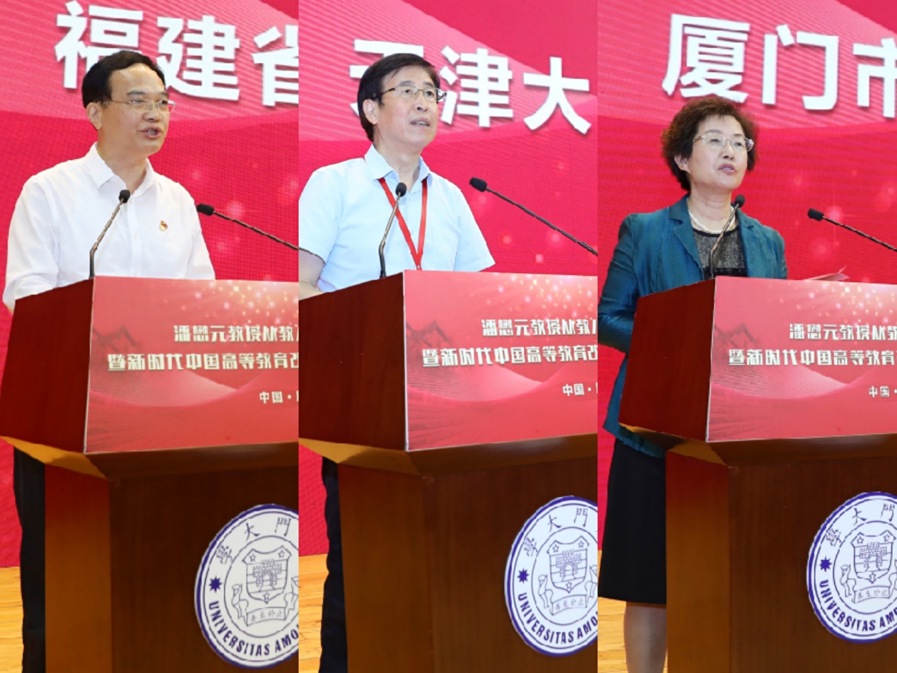 李家俊、国桂荣和林宝金等领导分别代表天津大学、厦门市人民政府和中共福建省委省政府向潘先生表达祝贺和敬意。李家俊书记指出,先生对天津大学的发展提出了很多的宝贵意见,他是一位具有家国情怀的教育家,在新工科建设的征程中,希望大家向潘先生学习,为中国工程教育的创新与行动助力。国桂荣副市长赞扬了潘先生对厦门市教育发展的贡献,强调了名城、名校与名师之间的关联。林宝金副省长谈到,潘先生用实际行动诠释了教书育人典范,值得我们尊崇和敬仰。希望厦门大学继续弘扬嘉庚精神,学习潘先生精神,为福建省的发展提供人才保障。