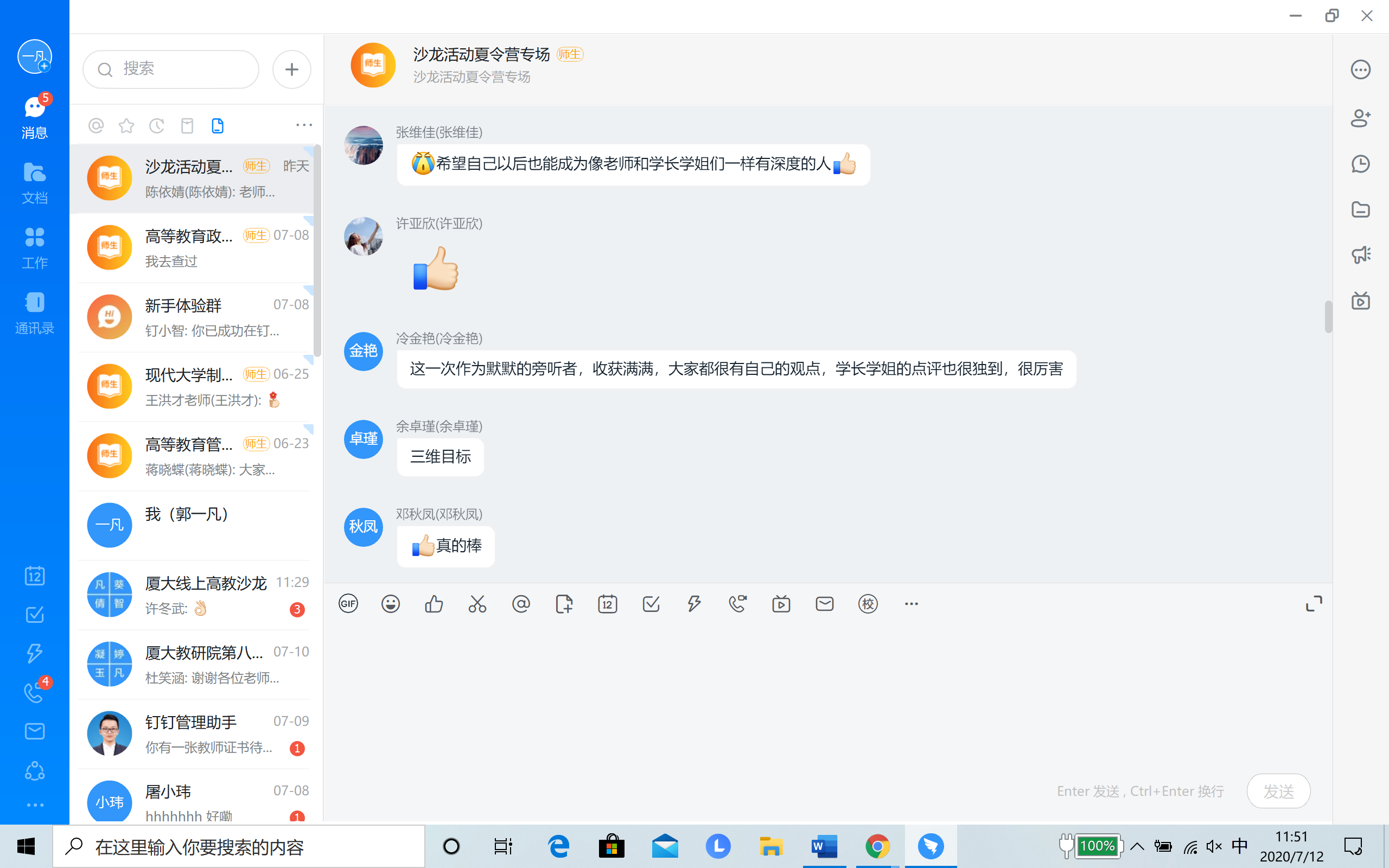 学术沙龙是学术夏令营的特色活动之一,目的在于带领营员体验厦大教研院独特的沙龙文化,在亲身参与中感受研讨交流、批判辩驳的魅力。7月8日晚,我院第八届“全国优秀大学生暑期夏令营”营员相聚“云上”,以特殊方式参加了副院长王洪才教授学术沙龙夏令营专场。本次沙龙专场面向全体营员征集汇报者,收到的32份汇报申请主题鲜明、内容详实、重点突出,涵盖了教育学、管理学、经济学、传播学等多个学科领域,充分显示出营员高度积极的参与热情和严谨认真的学习态度。经王洪才老师审阅,从中挑选3名同学作为汇报人,向营员们展示研究成果。