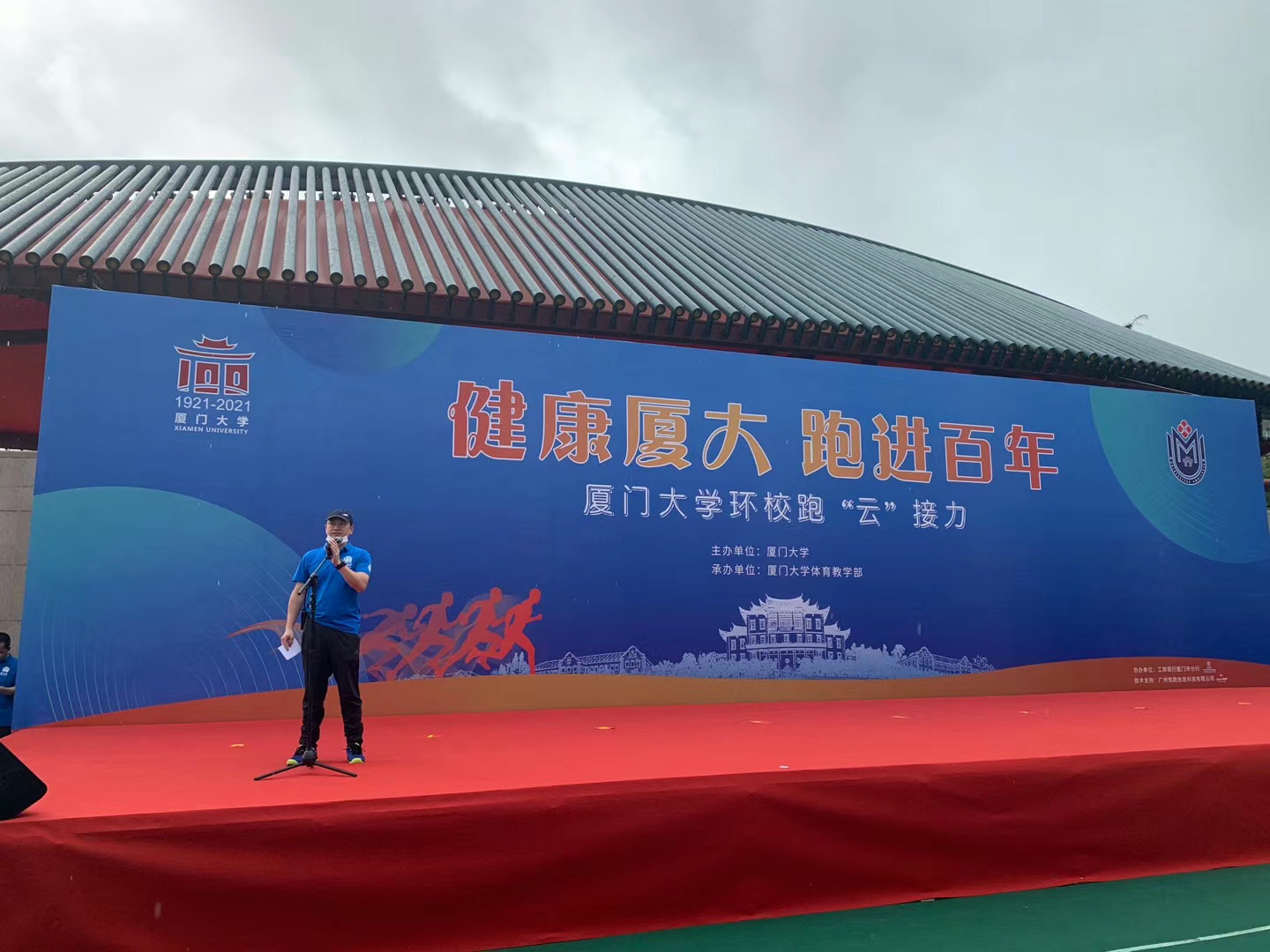 2020年6月14日上午8点,由厦门大学主办,厦门大学体育教学部承办的“健康厦大 跑进百年”环校跑“云”接力活动在演武场主席台前正式拉开帷幕。