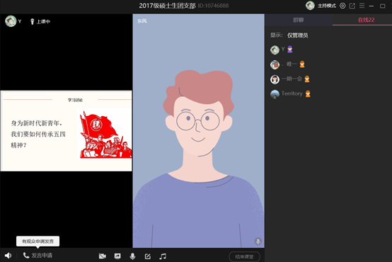 2020年5月1日下午,为迎接即将到来的五四运动101周年,激励青年大学生弘扬忧国忧民、热爱祖国、积极创新、探索科学的爱国主义精神,教育研究院2017级硕士生团支部组织开展“五四精神,传承有我”主题团日活动,活动通过QQ群课堂进行。