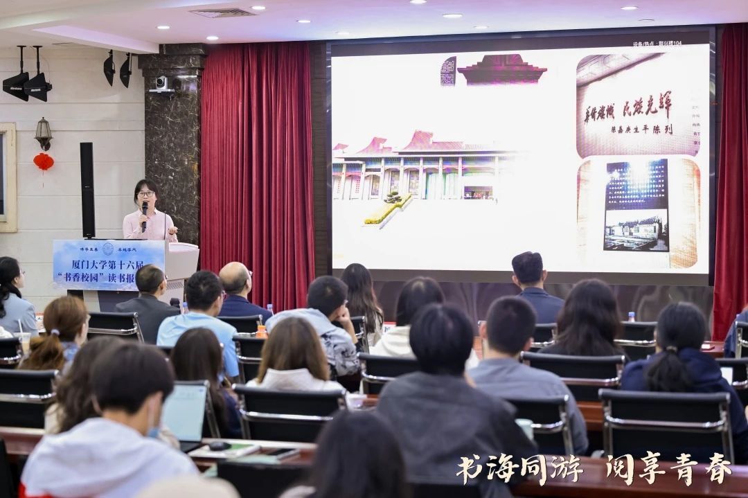 为着力构建“爱读书、读好书、善读书”的校园文化风尚,助力培养新时代青年的文化自信与思辨能力,2025年4月25日,厦门大学第十六届“书香校园”读书报告大赛决赛在联兴楼104报告厅圆满落幕,本次活动以“书海同游·阅享青春”为主题。经过层层选拔与激烈角逐,我院2023级博士研究生汪晨荣获大赛三等奖,学院获评“优秀组织奖”。