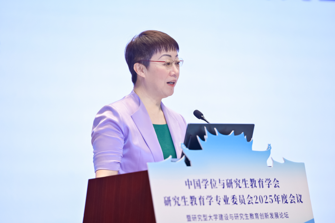 张淑林副会长代表中国学位与研究生教育学会对本次会议召开表示热烈祝贺。她在致辞中指出,研究生教育是国民教育的最高层次,是国家核心竞争力的重要体现,在教育强国建设中发挥引领标杆作用,有关高校应当进一步增强投身教育强国建设的使命担当,切实将《教育强国建设规划纲要(2024-2035年)》学习成效转化为推动研究生教育高质量发展的具体成果。