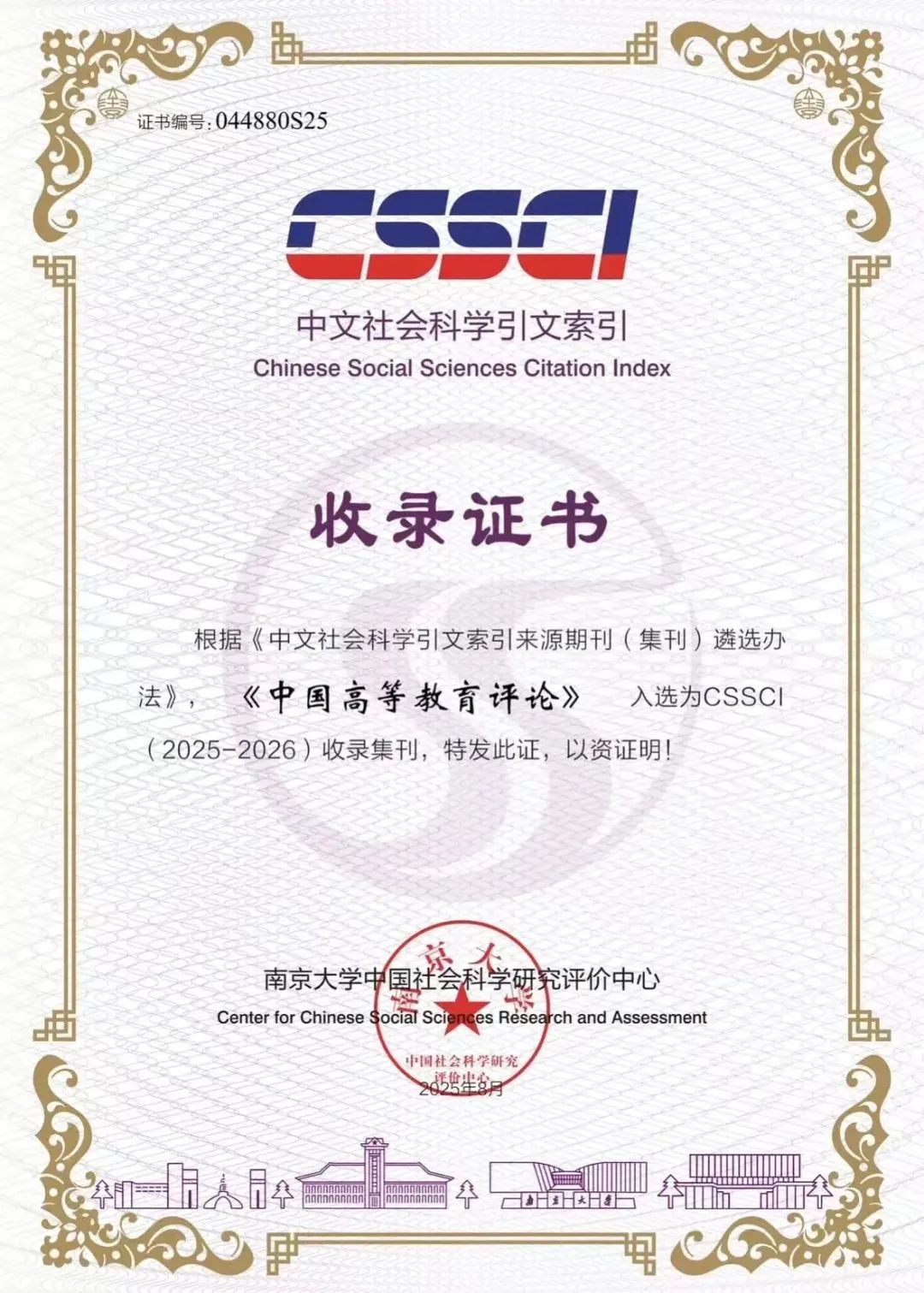 此前,《中国高等教育评论》已经入选2022年、2024年中国人文社会科学AMI核心学术集刊以及2024年度高影响力学术辑刊,现已成为高等教育学领域的“双核心(CSSCI、AMI)”学术集刊。此次入选CSSCI(2025-2026)收录集刊,标志着集刊的学术质量与影响力获得国内权威评价体系的高度认可,既是对《中国高等教育评论》十五年办刊工作的充分肯定,也是未来工作的新起点。