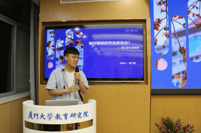 2025级新生班主任易梦春助理教授和孙秀娟助理教授,2023级博士研究生程飞亚和2024级博士研究生王仕超,围绕“教育学研究生身份构建与学术生涯规划”主题,从跨学科学习、跨领域研究、研究生身份解锁、研究生阶段规划等多个方面展开分享。活动由中心研究生会学术部费雨晴同学主持,50余名同学线下参与。