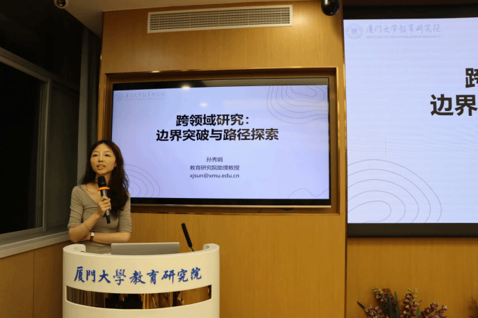 孙秀娟老师进行了《跨领域研究:边界突破与路径探索》主题分享。孙老师首先讲述了自身的跨领域研究经历,在这段经历中她拓展了研究视野,掌握了多样化的研究方法,这段分析让大家对跨领域研究有了更感性的认识。随后,她梳理了跨领域研究中普遍存在的多重边界,包括学科专业、研究方向、理论取向、研究范式、研究方法等边界,提出可以通过“与学术共同体对话”、“反思性总结”、“整合研究兴趣与个人经历”等方式跨越上述边界。孙老师坦诚指出,跨界探索过程中可能会面临“知识体系的碎片化”、“学术身份认同与归属感的摇摆”、“研究深度与广度的难以平衡”、“研究路径难以预测”等隐性风险。基于此,她建议大家从脑力、心力和体力三个层面做好自我调节与修复,从而顺利跨越领域的边界。