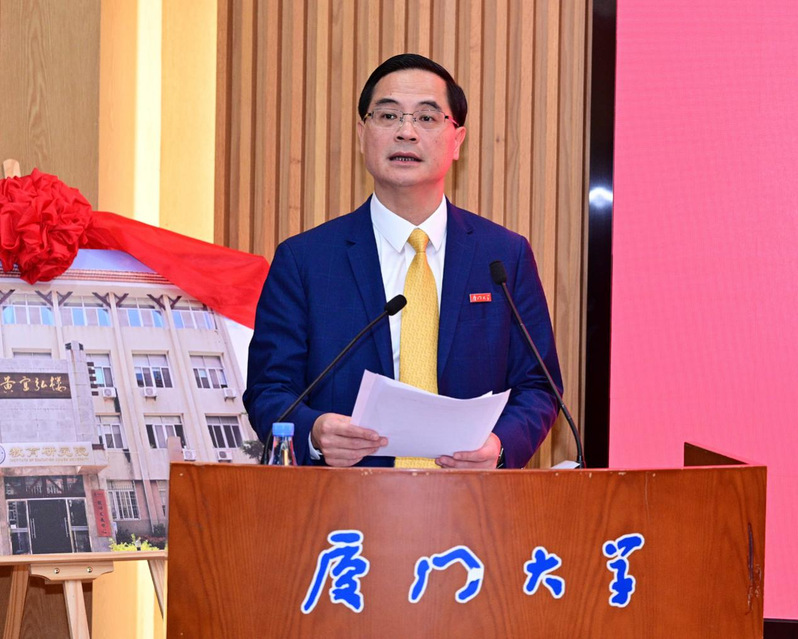 邱伟杰副校长代表厦门大学向黄宜弘博士、梁凤仪博士伉俪致以崇高敬意。他表示,厦门大学是一所文化底蕴深厚的高等学府,建校100年来为社会进步和民族复兴培养大批优秀人才。学校教育事业蓬勃发展离不开一代代海外华侨、社会贤达和广大校友薪火相传、接续襄助。他指出,梁凤仪博士代先生黄宜弘博士捐赠厦门大学,是对父亲黄克立先生爱校情怀的接续传承。黄克立先生是厦门大学杰出校友、香港商界巨擘、政界领袖,毕业后始终不忘母校栽培,持续襄助母校发展。他强调,老校友长子黄宜弘博士是香港著名企业家、慈善家和爱国爱港中坚人士,黄宜弘博士妻子梁凤仪博士是全球华人社会知名作家、企业家和慈善家;贤伉俪秉承父志,热心公益,兴资教育,赓续家风,对厦门大学倾爱有加;这份延续多个代际的爱心捐赠,充分彰显了一个家族与厦门大学的深厚情谊,是对“嘉庚精神”的具体践行与实际弘扬,必将传为佳话,永载史册。