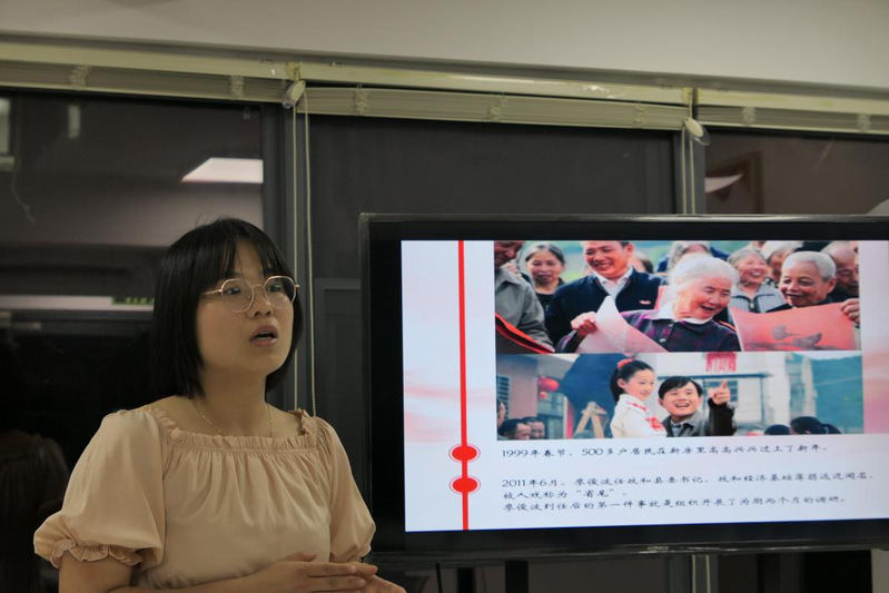 范慧婷同志分享了全国优秀县委书记廖俊波同志的先进事迹,这位辛劳一生的“樵夫”,带着他那份真真切切为人民服务的心永远地离开了我们,也为我们留下了宝贵的精神财富。 作为一名党员,我们要向廖俊波同志学习,做“和群众坐一条板凳”的人,要深入一线,在精准脱贫和让百姓过更好的生活方面做出自己的贡献。始终不忘共产党人的初心,坚持为人民服务。