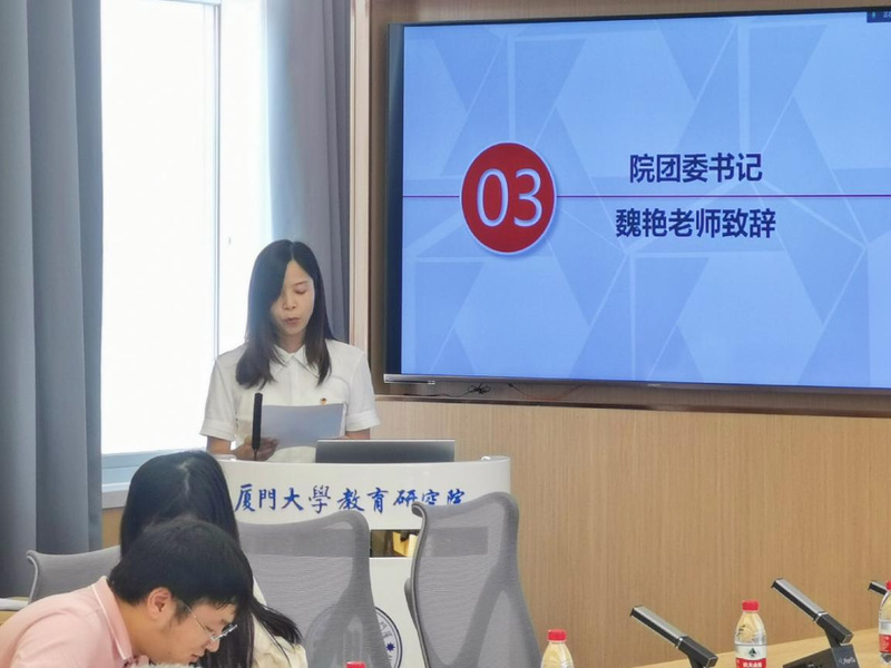教育研究院团委书记魏艳老师在致辞中,对院第十六届团总支、研究生会工作,特别是在百年校庆、院庆学术周等活动中的工作表现给予了高度评价,并表达了对即将产生的下一届团总支、研究生会成员的殷切期望。